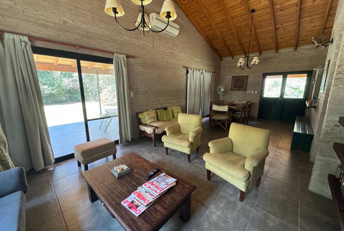Hermosa casa en venta ubicada en el corazón del barrio La Araucaria, una zona residencial tranquila con calles arboladas y excelente entorno natural. La propiedad cuenta con una antigüedad de 15 años y se destaca por su sólida calidad constructiva con doble pared y ambientes amplios y luminosos.